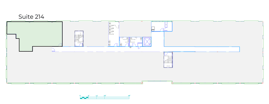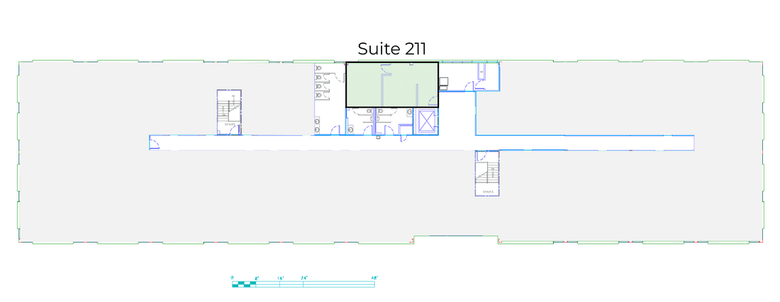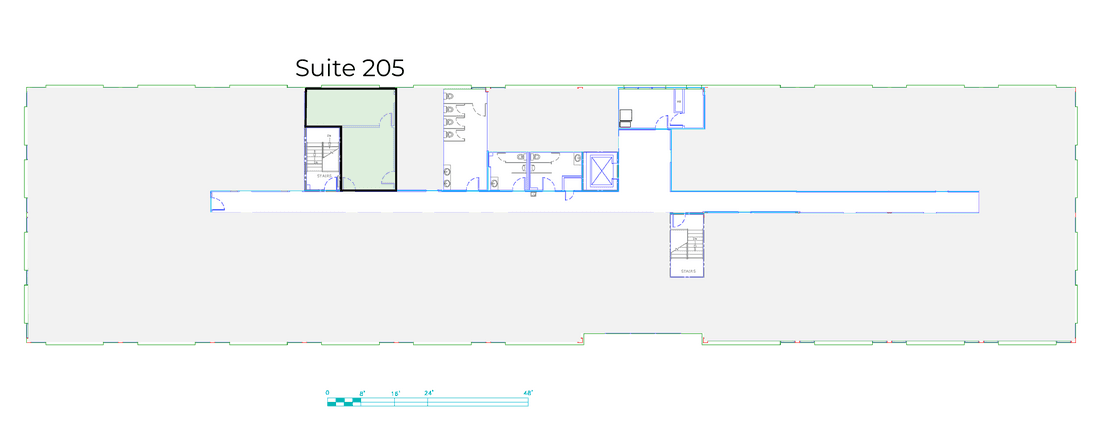 Private windowed office and reception. Expandable to a larger suite by combining with suite 205.